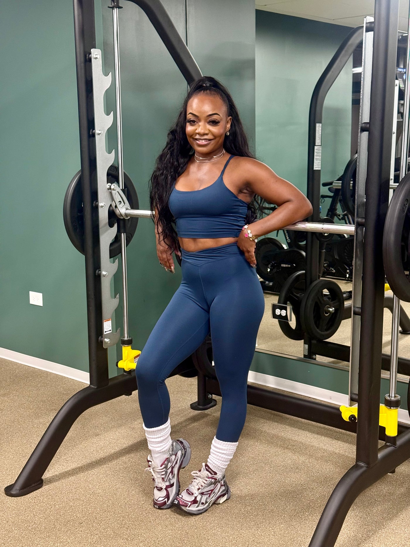 Cool confidence, sculpted in midnight blue. The Midnight Muse Sports Bra elevates your activewear with the perfect blend of comfort, support, and allure. Crafted from our buttery soft, lightweight Venice fabric, it moves as beautifully as you do; from morning sculpt sessions to moonlit strolls.